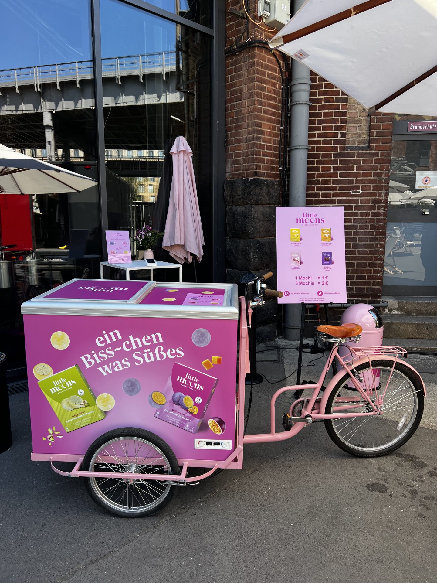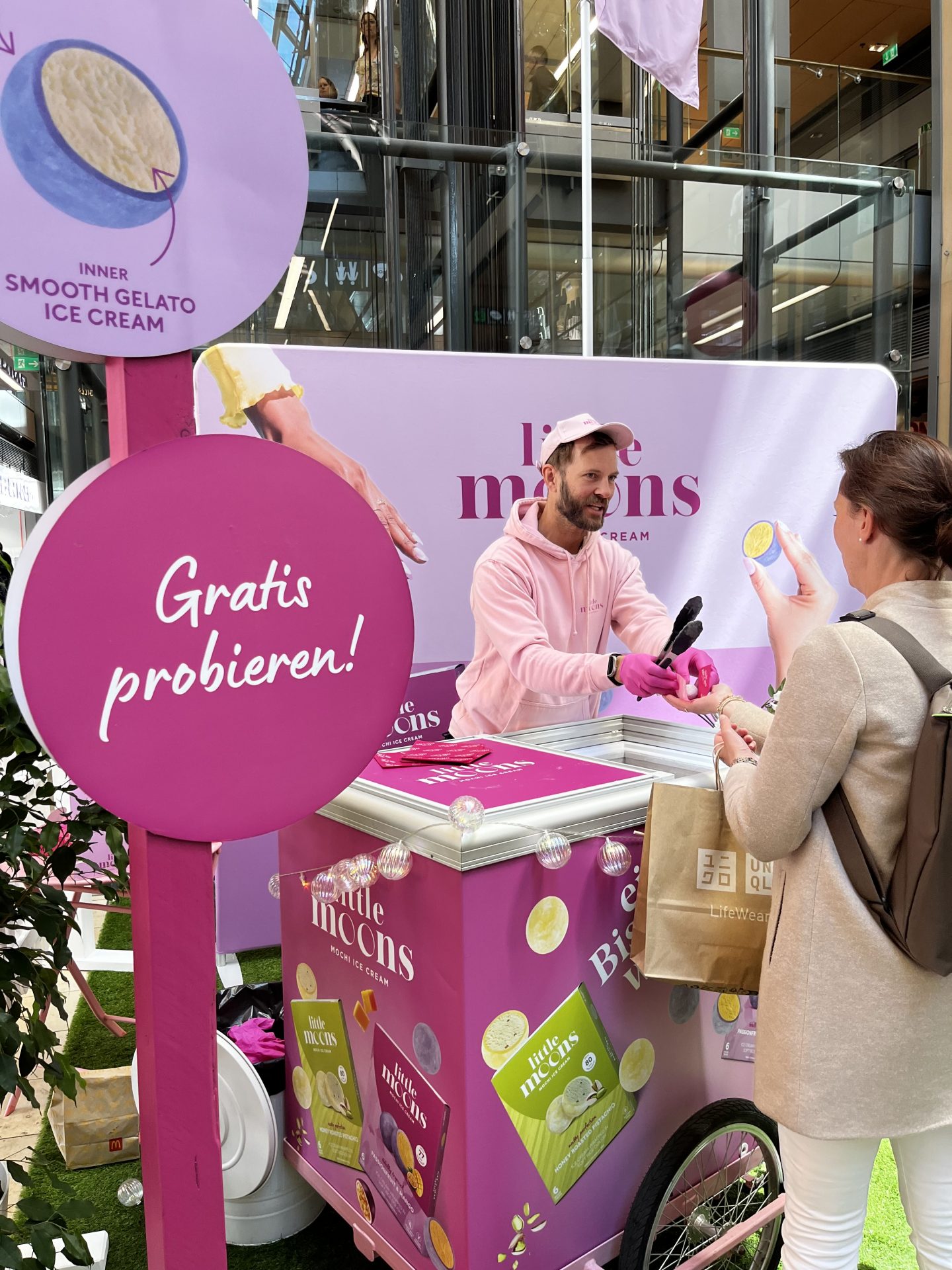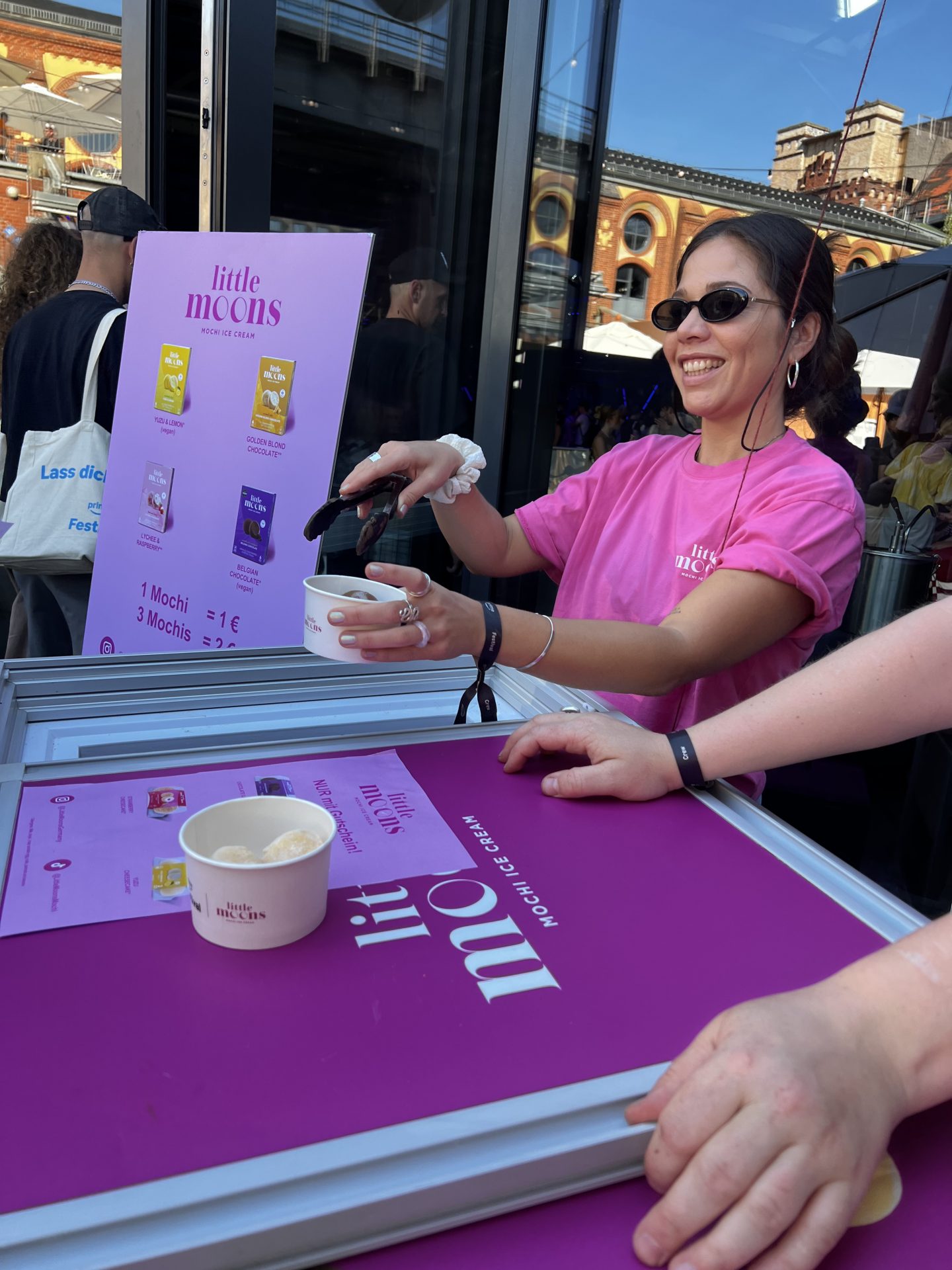 Next, we took part in the OMR Festival, one of Europe’s leading events for digital marketing and innovation. With a mobile fleet of trolley, bike, and sampling tray, we created an agile brand presence. Following the inspiring keynote by the Little Moons founders, guests enjoyed fresh samples right before and after the talk - the perfect brand moment.